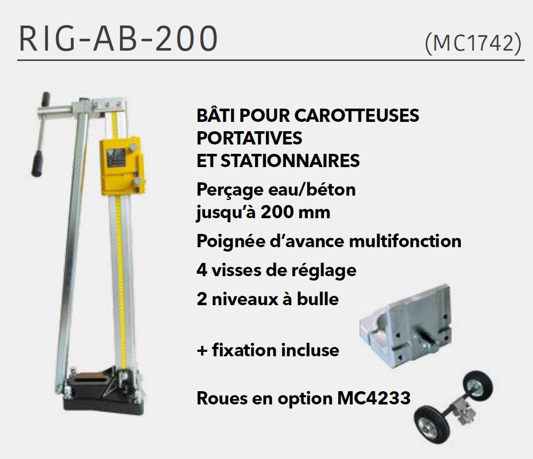 Carotteuse CDR3HW-220 portative avec bati à 3 vitesses pour perçage à sec et à eau, parfaite en maçonnerie.