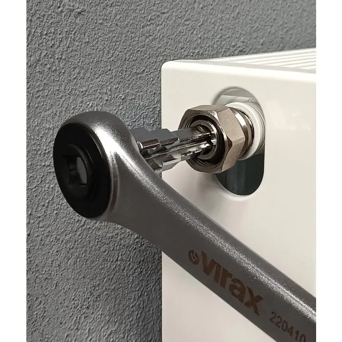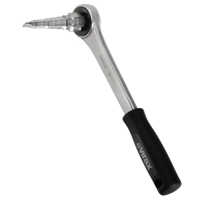 Cette clé à cliquet est conçue pour le montage des raccords à écrou prisonnier, assurant la liaison entre le radiateur et son robinet de réglage. Sa conception courte permet des interventions dans des espaces restreints, facilitant l’accès aux écrous à ergots et à 6 pans intérieurs. Cet outil est essentiel pour les professionnels du bâtiment travaillant avec des installations de plomberie.